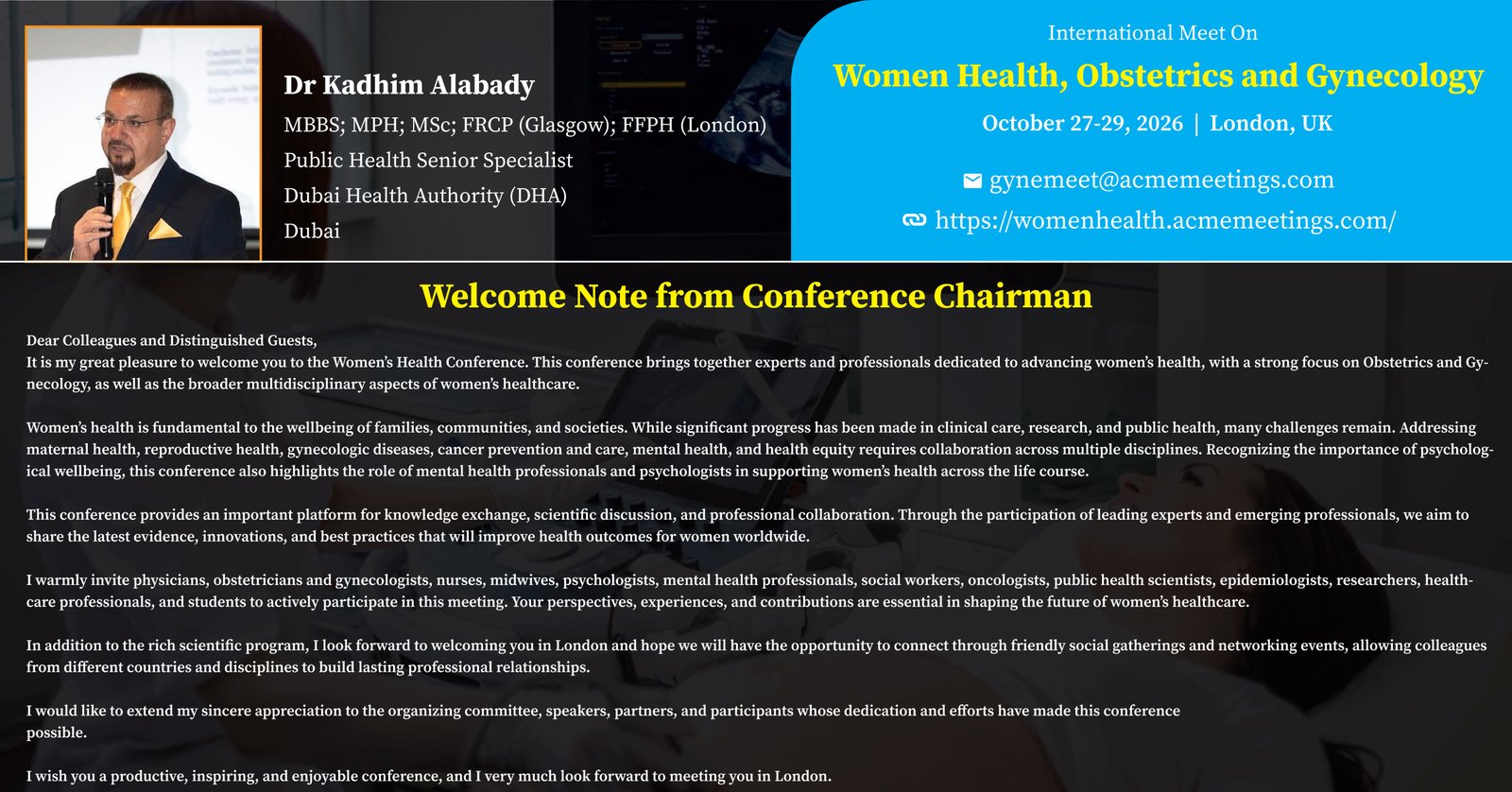 Dr. Kadhim AlAbady is a distinguished public health and epidemiology expert with over two decades of experience in academic, international, and national health systems. He is a Fellow of the Faculty of Public Health in the UK (FFPH) and a Fellow of the Royal College of Physicians and Surgeons of Glasgow (FRCP). Dr. Alabady holds a Doctorate in Public Health and Epidemiology, a Master’s in Clinical Epidemiology (MSc), and a Master’s in Public Health (MPH), all awarded by universities in the Netherlands. He is also a registered Grade A Epidemiologist with the Netherlands Epidemiological Society. Since 1999, Dr. Alabady has held prominent roles across diverse sectors, including: ⦁ Academia: Erasmus University (Rotterdam, Netherlands), Queen Mary University (London, UK), and the University of East Anglia (Norwich, UK) ⦁ International Organizations: United Nations ⦁ National Health Institutions: Qatar’s National Health Authority, UK National Health Service (NHS), and the Dubai Health Authority His work has been instrumental in shaping research and development (R&D) strategies, particularly in the field of non-communicable diseases (NCDs), including mental health, cancer, cardiovascular diseases, diabetes, and broader population health issues. Dr. Alabady has authored numerous publications in the UK, contributing significantly to public health knowledge and policy.
